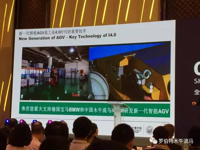 作为本次主办单位之一的德国物流研究院(Fraunhofer IML)在本次大会一开始就提出,新一代智能AGV是工业4.0时代的重要技术,并同时宣布,德国物流研究院(Fraunhofer IML)将协助德国宝马(BMW)和i-COW木牛流马(苏州罗伯特木牛流马物流技术有限公司)在各自领域开发新一代智能AGV,相信在不久的将来木牛流马会在智能AGV领域为推动工业4.0而献上自己的一份力。