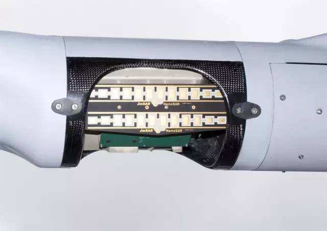 “扫描鹰”无人机可以跟踪定位多种目标,并实时传回高质量图像。上图为“扫描鹰”无人机的光电探头和小型SAR雷达。