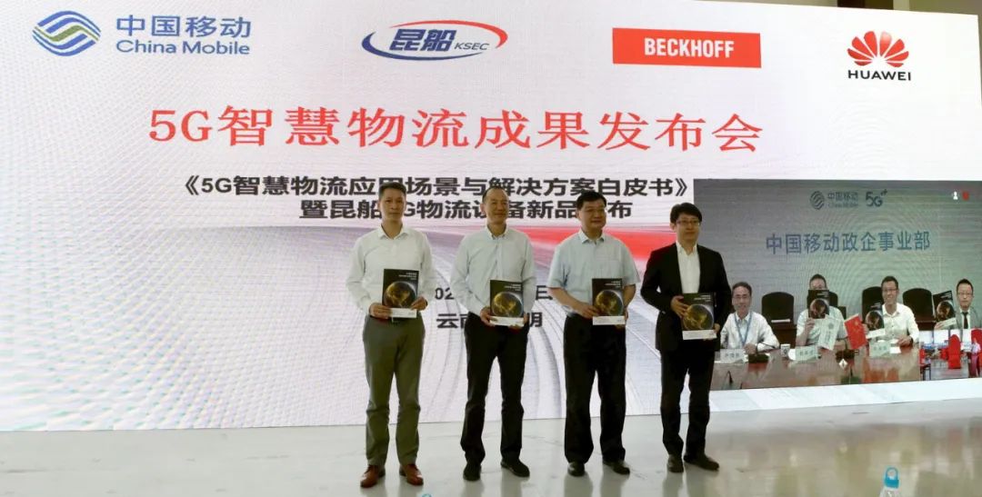 6月8日,中国船舶昆船集团(以下简称“昆船”)携手华为、中国移动(以下简称“移动”)、和倍福中国(以下简称“倍福”)四方联合举办“5G智慧物流成果”发布会。