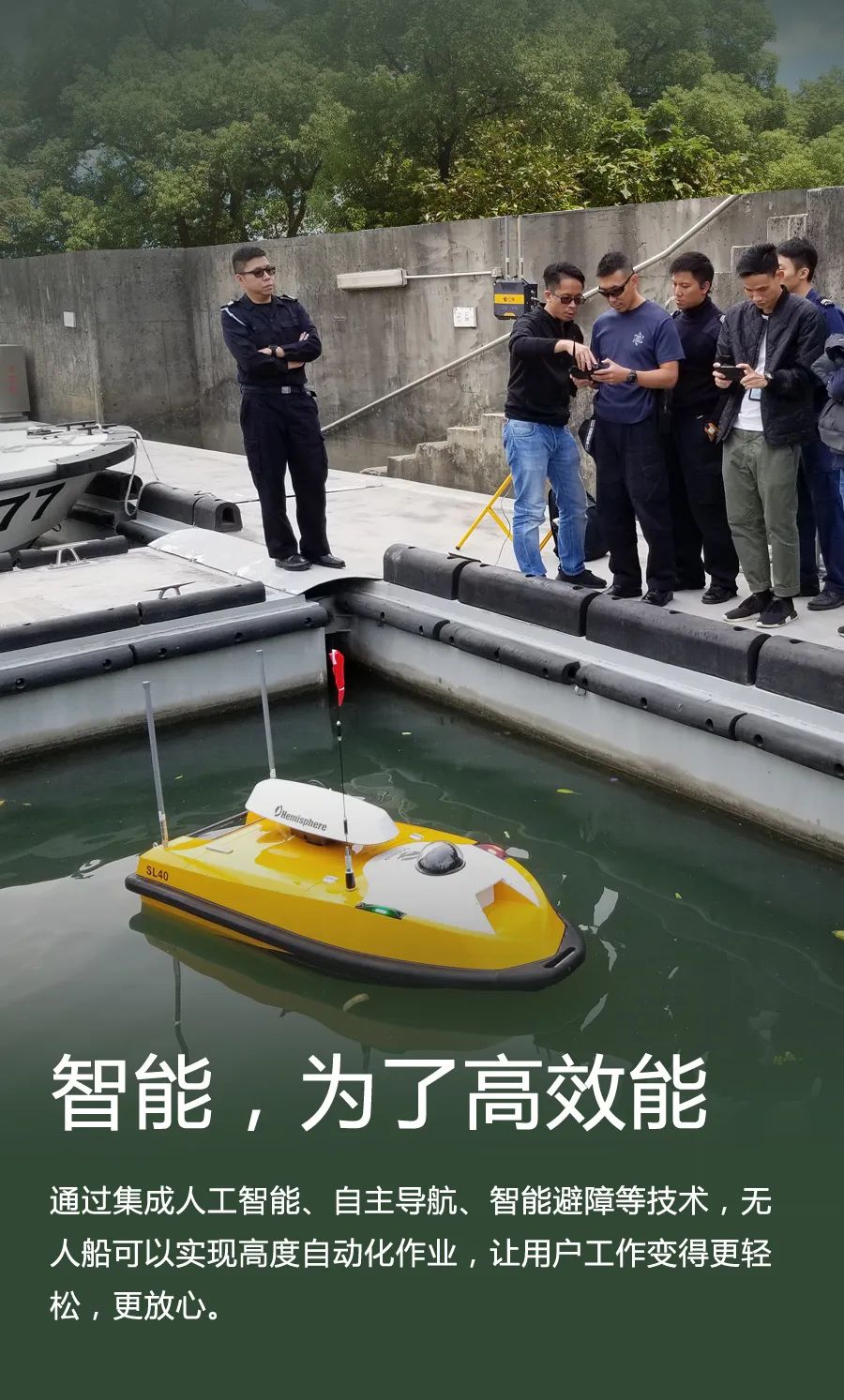世界领先的自主航行技术,针对无人船的自主导航算法,让云洲探测无人船可以在无人操控的情况下自主完成任务。