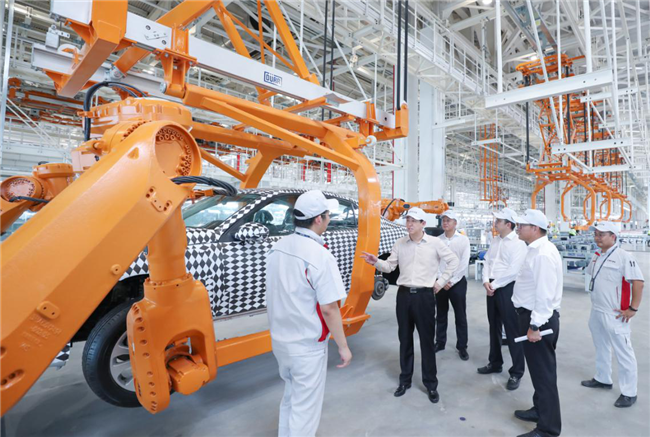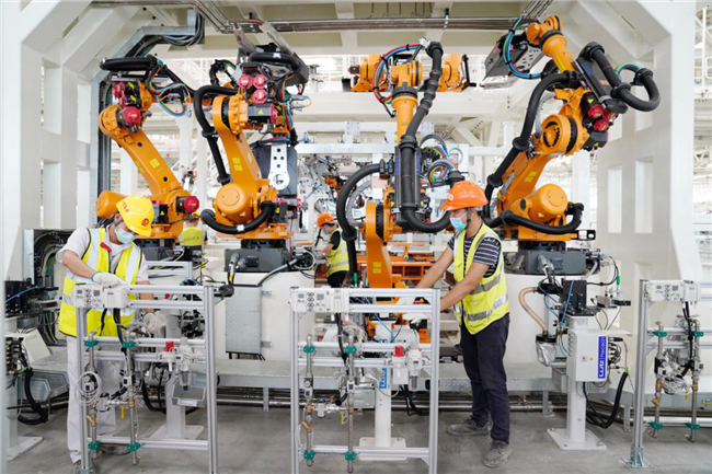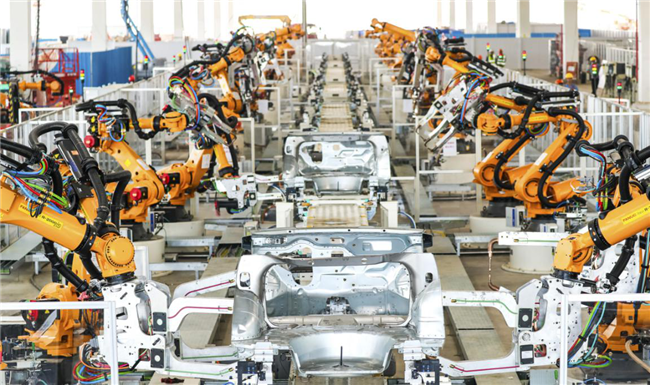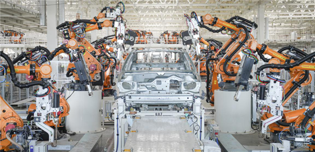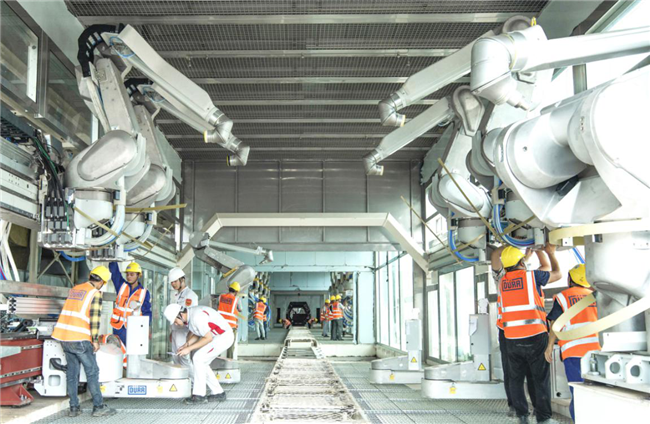 据悉,两大基地均按照工业4.0标准建设,装配智能机器人2545台,采用世界最先进的装备、世界最先进的工艺,实现世界最先进的智能制造,目前全线进入设备安装调试阶段,全面达产后能做到每分钟生产1辆车。
