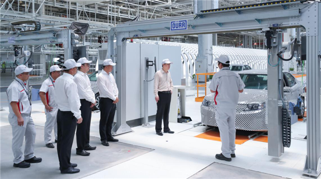 装配车间采用德国杜尔装配线,全球首创虚拟匹配系统,是世界上自动化率最高的汽车装配线。