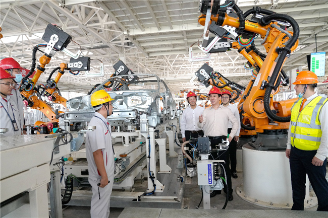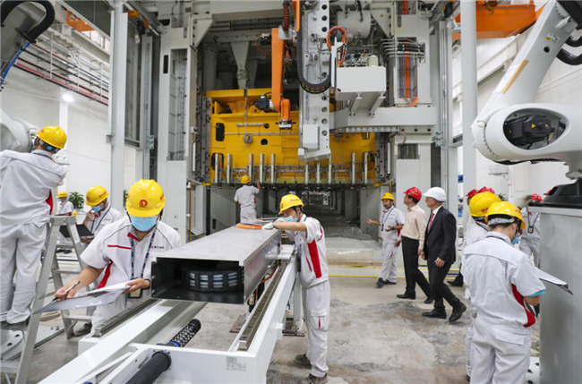 车身车间采用德国库卡和日本发那科装备,运用数字化双胞胎技术,在行业首创生产数据跨车间协同,是世界最先进的高端智能“黑灯工厂”。
