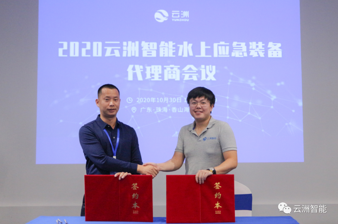 10月30日,“2020云洲智能水上应急装备代理商会议”成功举行,近30家来自公安、消防、应急等领域的涉水产品推广单位齐聚云洲智能总部香山海洋科技港,深入了解水上应急无人船装备及其最新应用发展,共同探讨合作共赢之道,并进行了现场代理签约。