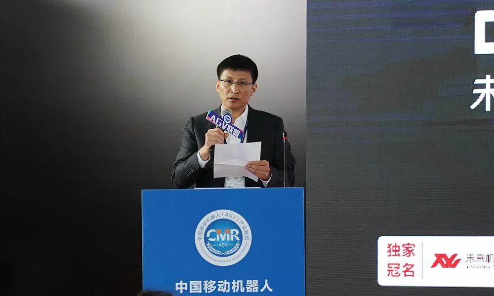 ▲中国移动机器人(AGV)产业联盟主席、新松公司副总裁张雷发表主题演讲