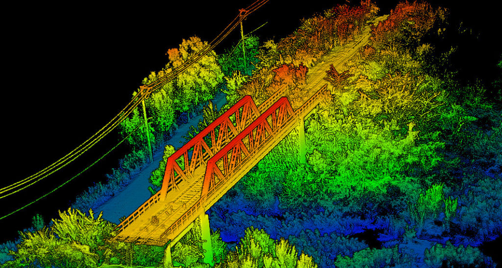 通过数据融合,可以在树叶,电线和桥梁侧面看到出色的清晰度。由此产生的点云使工程师能够轻松,准确地确定需要密切关注的桥梁区域。