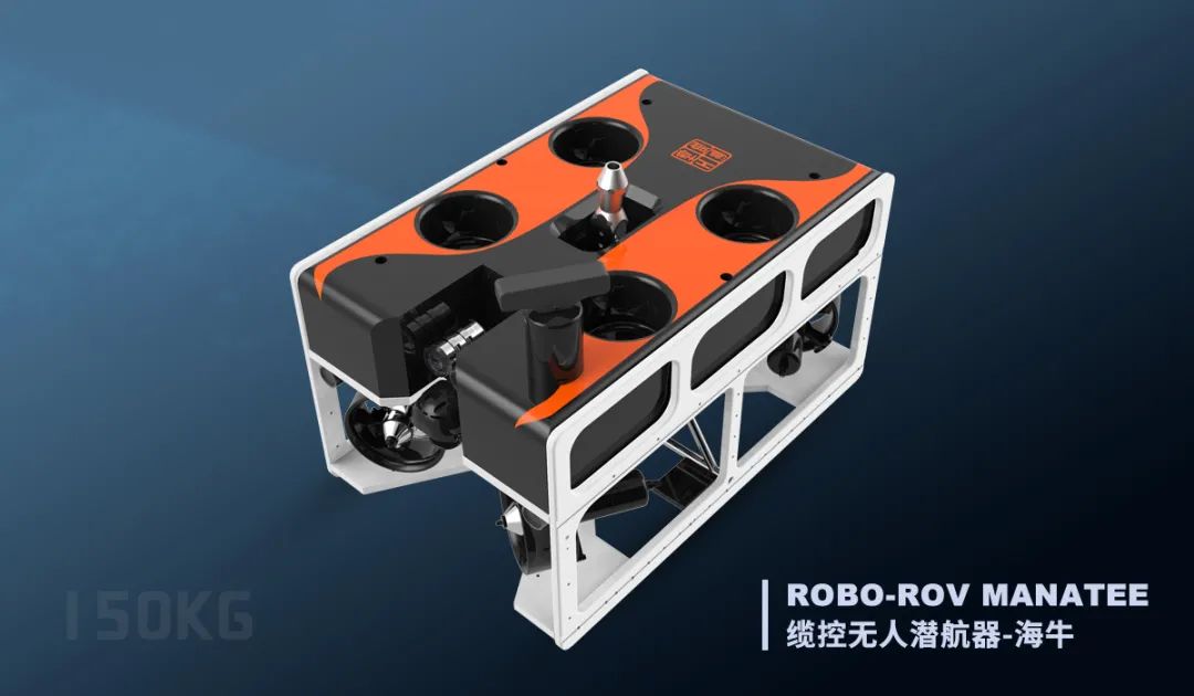 缆控无人潜航器-海牛是一款百公斤级作业型缆控水下机器人,设备净重150kg,潜水深度可达1000m,拥有极佳的抗流性能,配备自主研制的全海深水下推进器,具备8推动力结构,负载重量大于30kg,为水下如多波束声呐、USBL、多自由度机械手等多传感器融合提供了可能,设备配备兼容式水密硬件搭载接口,能够兼容目前主流海洋仪器与水下作业工具,真正实现水下作业需求。