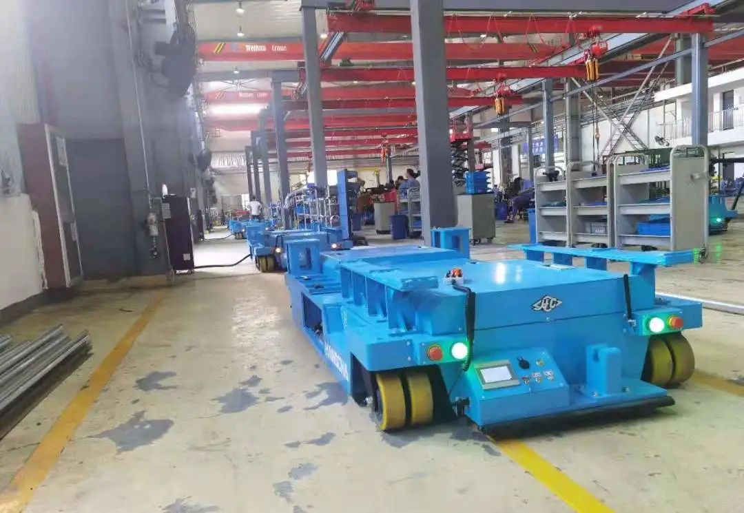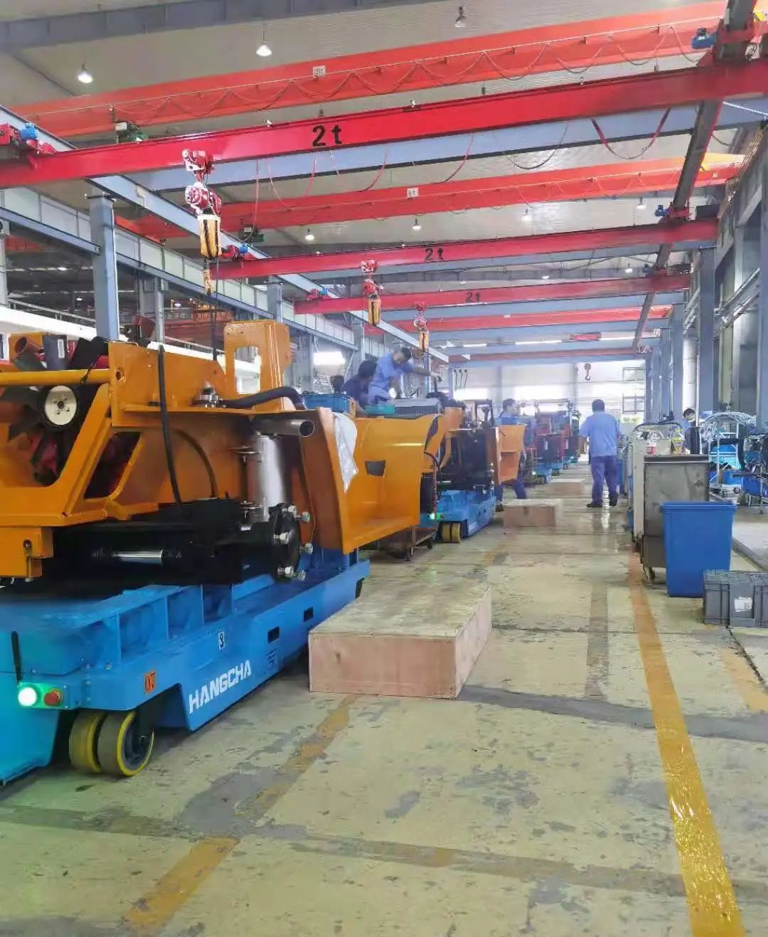 此次杭叉智能开发的8.5t重载AGV车型,代替传统轨道及链条,服务于5~12t新能源叉车总装线,正是杭叉集团智慧工厂建设的又一突破。该项目抢时间、赶速度,为不影响产线正常作业,各部门全力联动配合,18台AGV车辆45天完成车体生产,用时三天产线联调上线(一般项目用时三十天),试生产基本零失误,生产工作零耽误,体现了杭叉速度与杭叉质量!