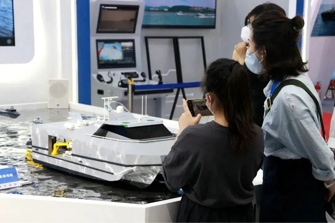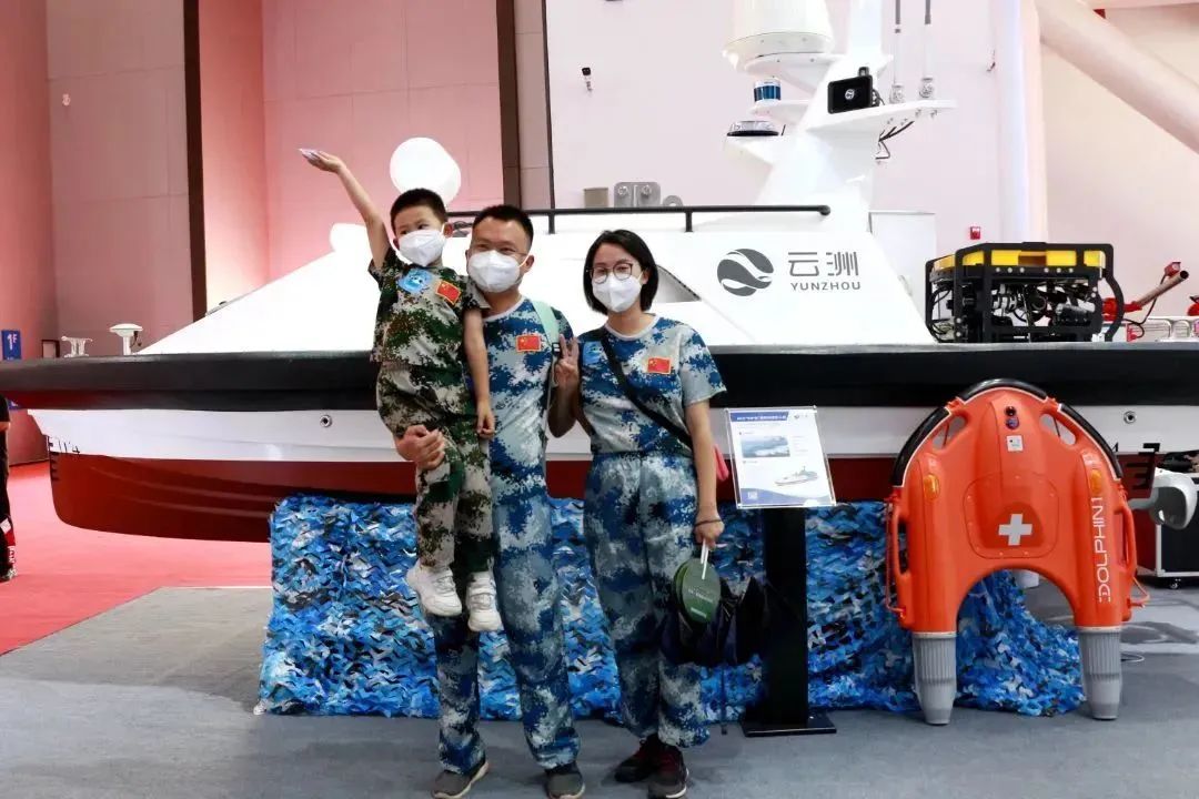 很多观众都是首次看到无人船艇实艇展示,当了解到无人船艇目前的成熟应用后,均竖起大拇指,为我国领先的无人船艇技术水平感到骄傲,并纷纷在无人艇旁合影留念。