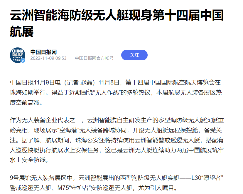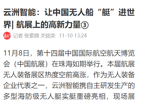 - 云洲智能无人艇再次刷屏!重温中国航展上的媒体焦点时刻