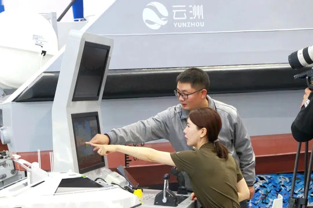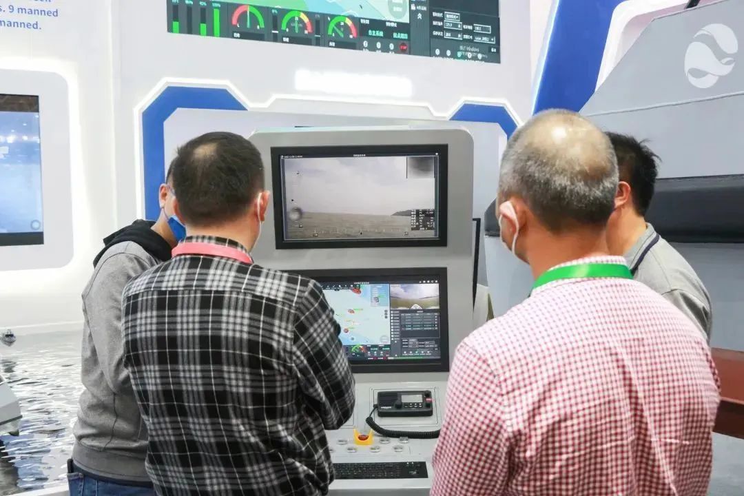 为了更直观地展示无人艇的作业模式,云洲智能在现场架设了远程操控基站,可以直接对70公里以外的无人船艇下达自主航行、光电侦察、喊话驱离等指令。在技术人员的辅助下,观众得以亲自掌舵,过一把“船长”的瘾。有了无人船艇技术的加持,船长船员得以真正实现运筹帷幄之中,决胜千里之外,相信这样的体验,能够点燃更多青年人的“科技海洋梦”。