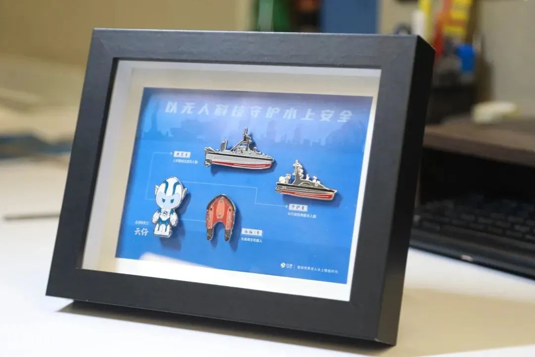 徽章被戏称为航展上的“硬通货”,小小一枚徽章,蕴含了企业的文化,也迅速拉近了与会者的距离。本届航展上,云洲智能发布一套设计感满满的无人船艇主题徽章,一经推出便成为现场的爆款,前来云洲智能参与活动、交换徽章的客商络绎不绝,氛围热烈。