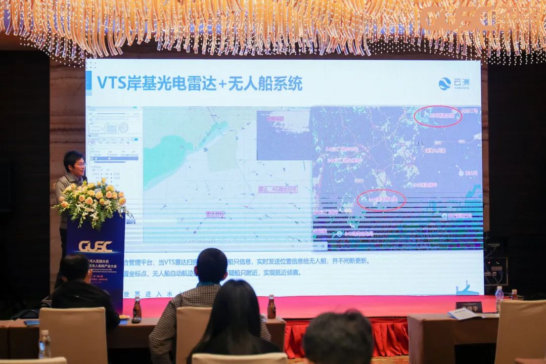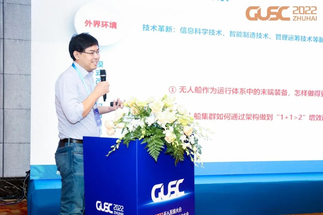 在“海洋无人系统与智能船舶标准论坛”现场,云洲智能研发中心副总工程师邓科博士发表了题为《无人船技术发展和应用》的演讲,从系统到体系,与来自知名高校、一流科研院所、权威检验机构的论坛嘉宾共同探讨无人船艇技术的创新发展,分享云洲智能无人船集群技术的创新应用及其为海上作业提质增效带来的变革。