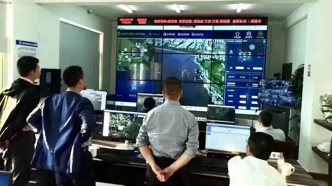 在台州某公安局,蜂巢航宇智能无人机巡检系统、垂直起降固定翼无人机HC-525、HC-332H多旋翼无人机进行航线预设、远程管理,实现对目标区域的自动巡航,无须在现场部署大量警力,无人机系统可自行采集的图像、数据实时传输进行智能分析、预警;支持24小时在线“执勤”。