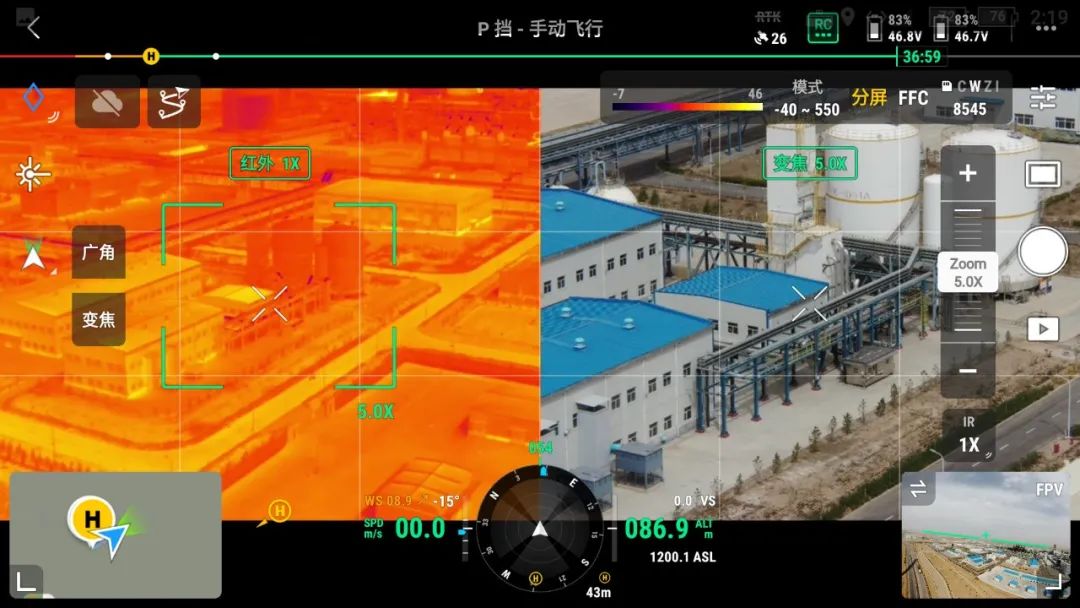 园区面积大,设备设施高大,地面巡查效率低,存在视野盲区,且缺乏隐蔽性。通过无人机的高空立体化视角,可高效对厂园区内安全隐患巡查、执法取证并进行数字化存档。通过无人机的可见光与红外热成像影像对比,可检查生产区设备结构有无破损、园区内物资堆放是否符合规范,发现安全隐患时拍摄取证,便于后续核查并督促问题整改闭环。