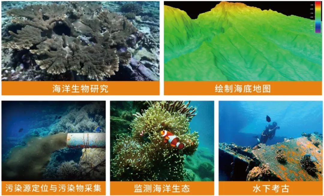 · 360度全方位移动:当需要通过水下狭小空间,如礁石间隔或采集样本时,ROV能够精确完成任务;