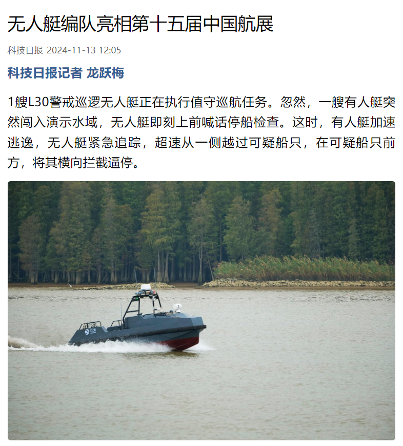 “智能无人艇编队在中国航展上演‘激浪追击’”