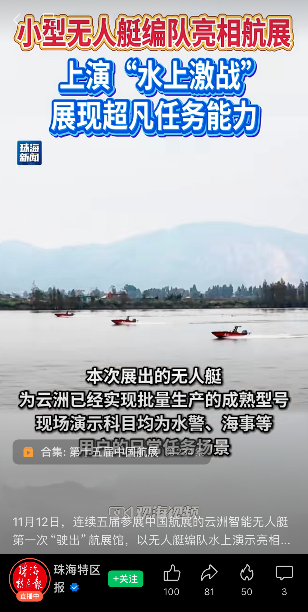 直播云洲智能无人艇在中国航展第二展区参展情况