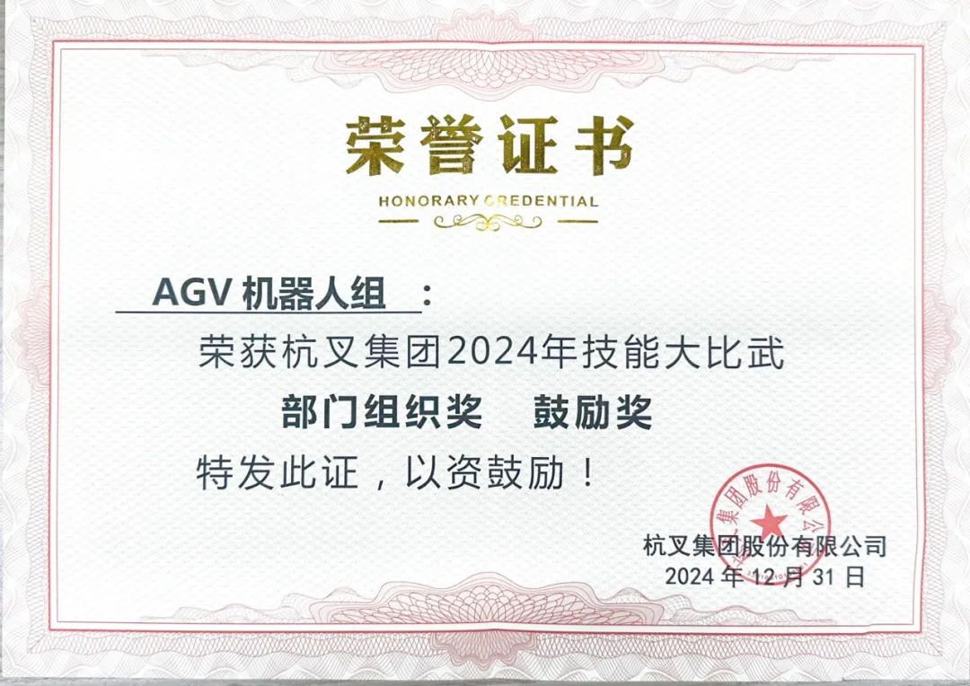 通过强强对决、优中选优,最终选拔出技能大比武AGV机器人调试大赛一二三等奖共四名;此外,杭叉智能也荣获杭叉集团2024技能大比武部门组织奖。
