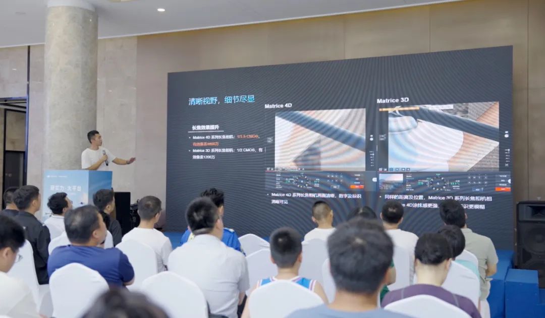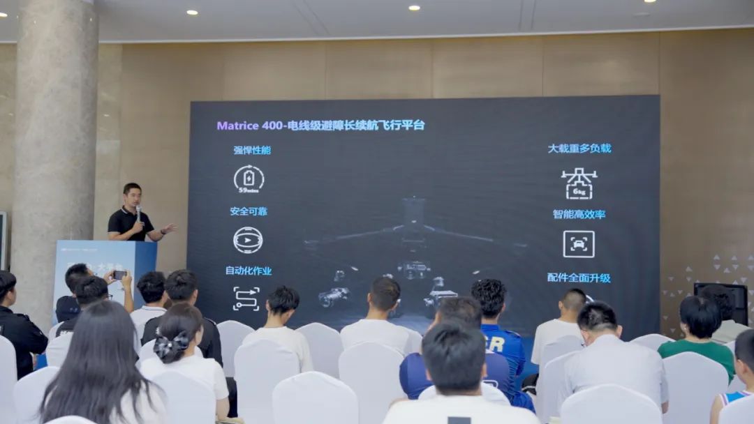 最后由业务副总方瑞凯为大家带来大疆Matrice400及大疆制图系列产品的介绍并结合实际应用案例进行分享。Matrice 400,它不仅是飞行性能的巅峰之作,更是复杂任务的全能载体,最多可同时挂载7个负载,最大载重可达6公斤,适应更多作业场景;航线最大速度可达25米/秒,较上一代提升60%;采用多传感器融合技术,实现避障性能的突破性提升;最远图传距离可达40公里,并支持空中中继;更有智能检测、自动化作业、丰富的AR等功能。