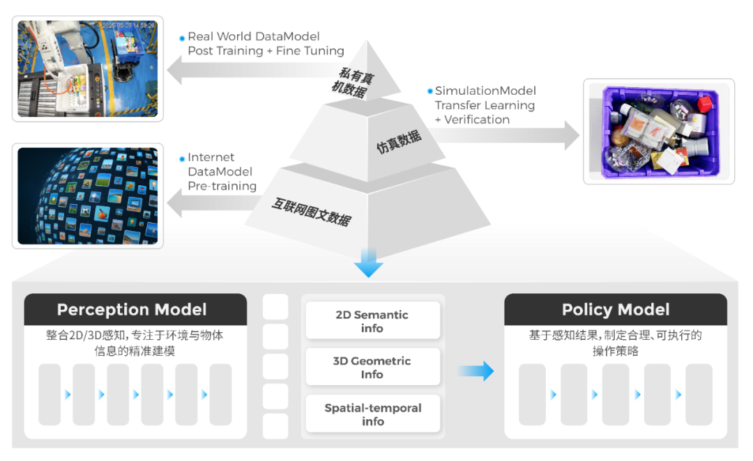 分层架构保证了“数据到决策”路径的高效闭环与系统扩展性。其分层设计提升了可解释性,支持逐层定位与优化,极大提高研发和运维效率。该架构具备高度灵活性,可分阶段积累数据、按需替换模块,并与硬件解耦,支持多样化末端执行器。同时,分层实现轻量化部署和模块级更新,在保障系统稳定性和精度的同时,显著降低算力成本,更契合工业和仓储场景对于可靠与高效要求。