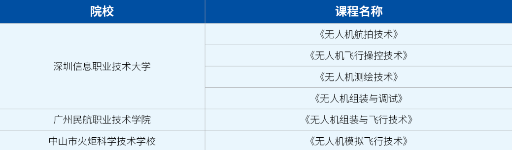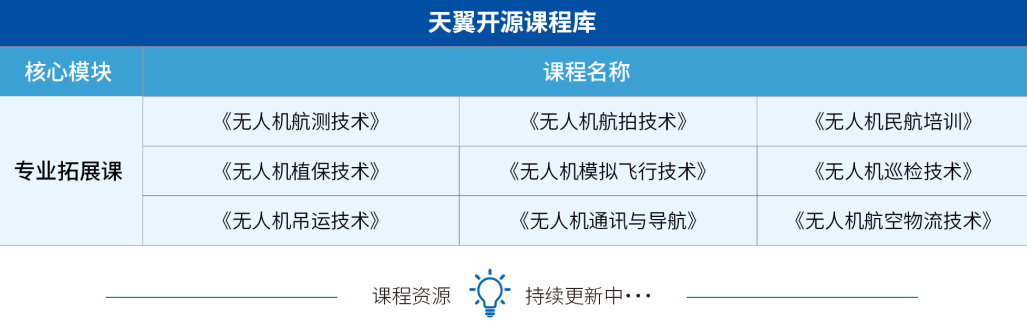(1)展示部分院校精品课程,欢迎各大院校无人机相关专业选修。目前仍在对接30多所院校,对接课程数量超50门,敬请期待。