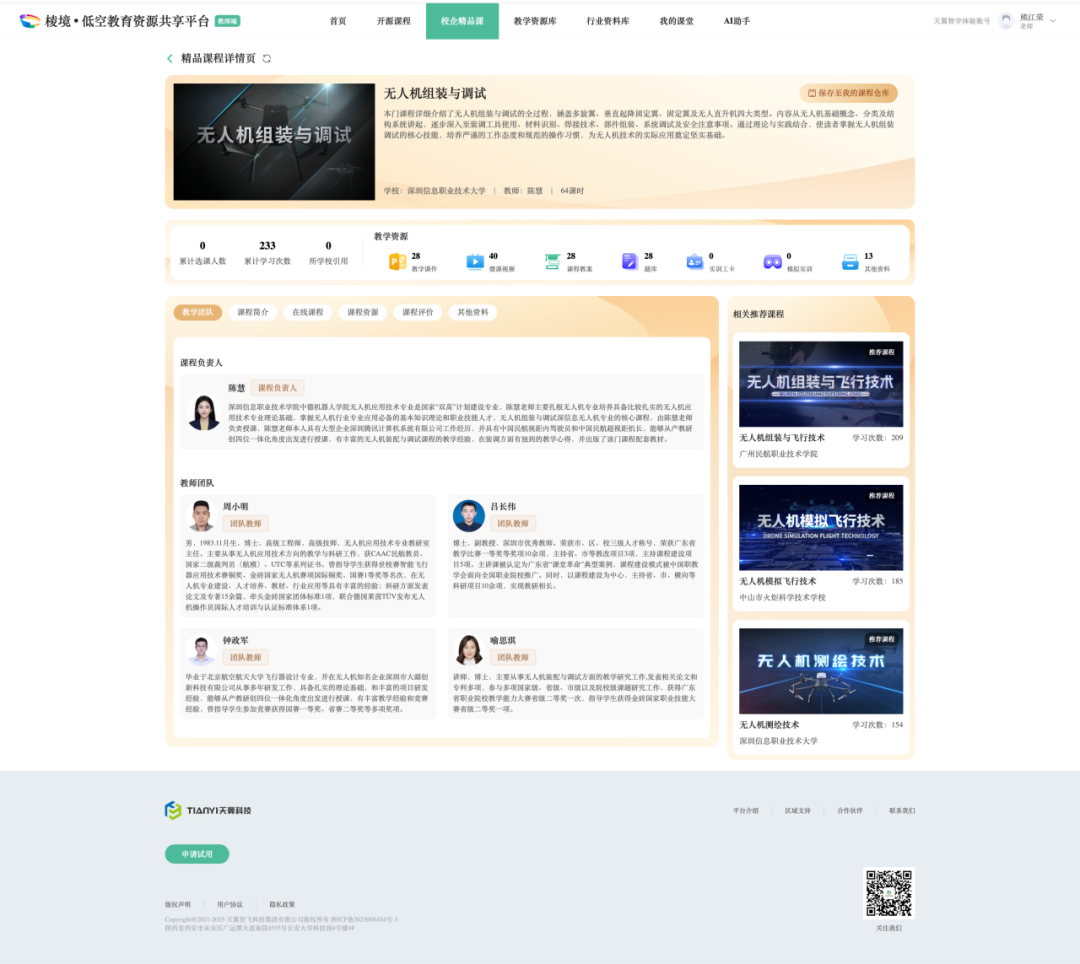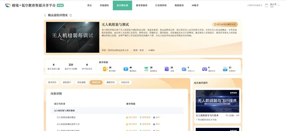 邀请全国各大院校上传校本课程,以细分赛道平台优势,推介全国低空经济相关专业院校选学,扩大院校专业建设影响力。