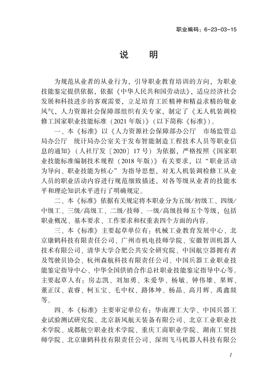 职业标准:包含全部无人机相关证书,如人社部国家职业技能标准等(涵盖新工种:无人机群飞行规划员(征求意见稿)等)。