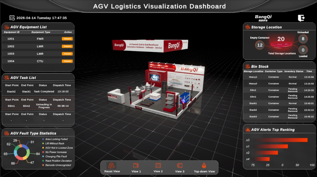 此次展会汇聚了全球超过1200家顶尖供应商。作为展会上少数以“工业AI智能体+全栈软硬件一体化”为核心优势的中国企业,磅旗科技在A3813展位面向全球首发了其海外仓专属智慧物流方案,并首次现场展示了数字孪生系统。该系统通过工业AI小模型与实时数据驱动,构建了与物理工厂1:1映射的虚拟产线,实现全流程动态仿真与实时监控,吸引了大量海外专业观众、集成商与终端客户驻足洽谈,成为“中国智造”在国际舞台上的一个亮点。