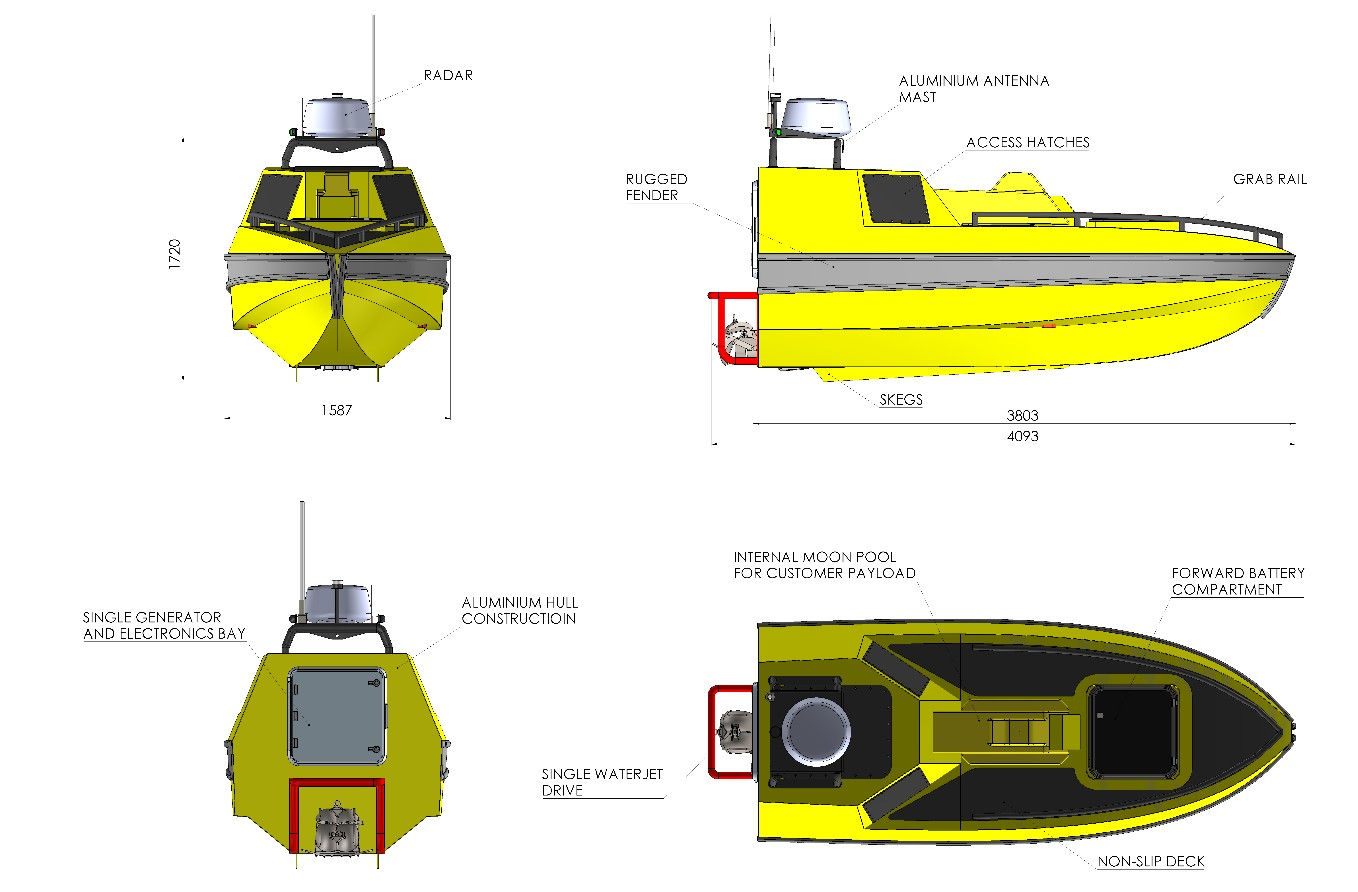 / 整个船体外围有不规则橡胶防撞物。船体两侧还有额外的防撞物用以防止从船体两侧靠过来的起吊点