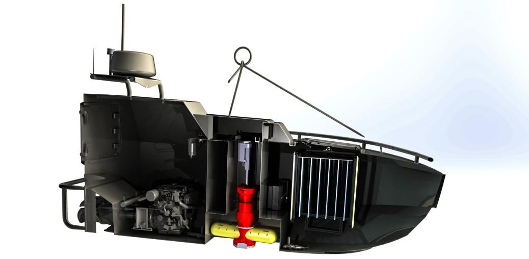 半排水量型全封闭自动扶正型船体总长