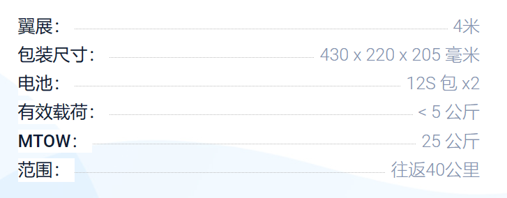 DLV-4专为远程航空物流而设计。它能够携带多达 5 公斤的货物, 面向商品、药品和电子商务订单的交付。这架飞机将连接城市, 仓库、医院和偏远地区。根据配置,它可以到达100公里外的位置。 能够进行超视距 (BVLOS) 操作。