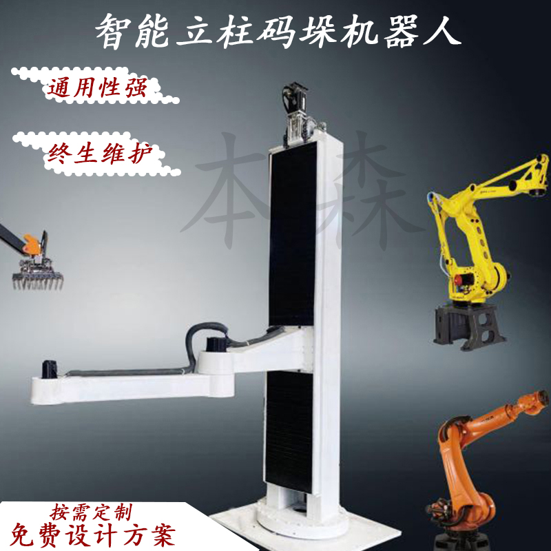 汽车轮毂机器人码垛全自动堆垛机械臂是一种专门用于汽车轮毂搬运和码垛的自动化设备,以下是关于这种机械臂的详细介绍: