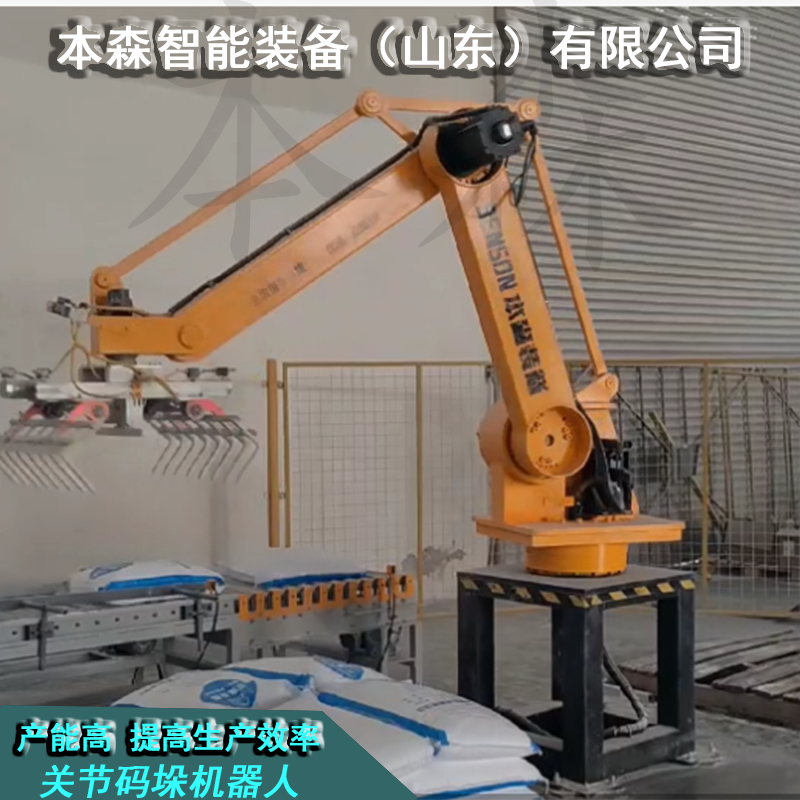 四、应用场景复合肥码垛机械手搬运机器人广泛应用于复合肥生产企业、化肥仓库等场所。它能够适应不同规模、不同种类的复合肥生产线需求,为复合肥的包装、码垛和储存提供高效、准确的解决方案。