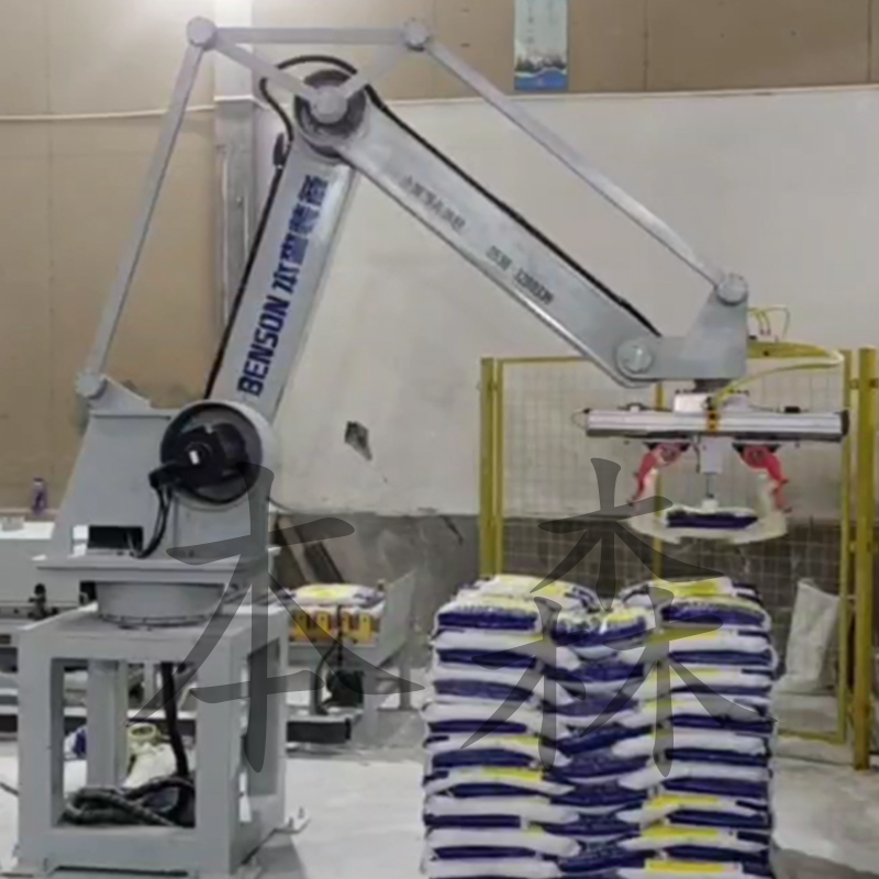 本森麦谷粉智能码垛机器人是本森智能装备(山东)有限公司针对麦谷粉等粉体物料包装设计的自动化设备,具有立柱式结构紧凑、高效精准、灵活可调、安全可靠等特点,能够显著提升麦谷粉生产线的自动化水平和生产效率。以下是详细介绍: