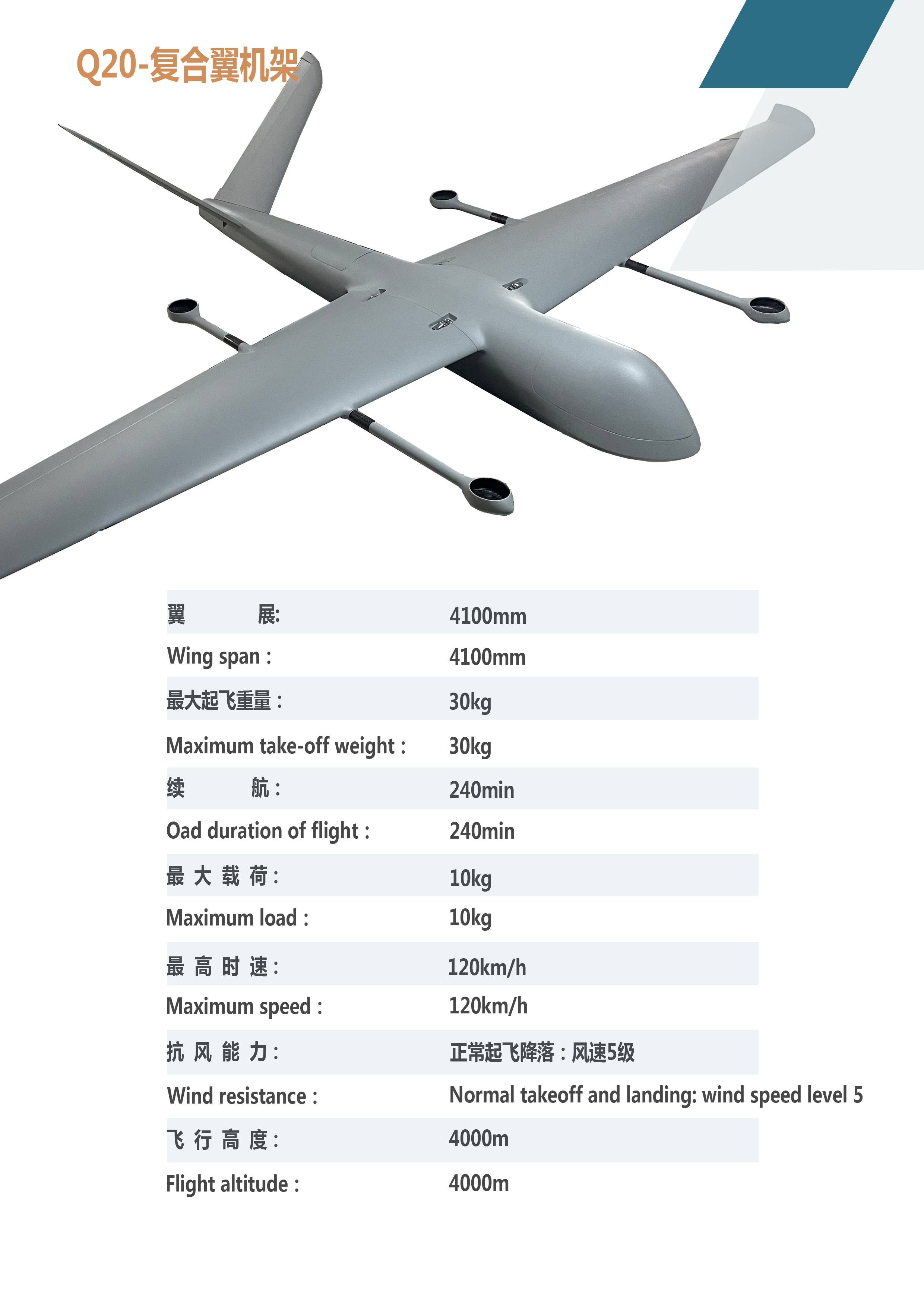 翼展4100mm垂直起降固定翼无人机机架外壳