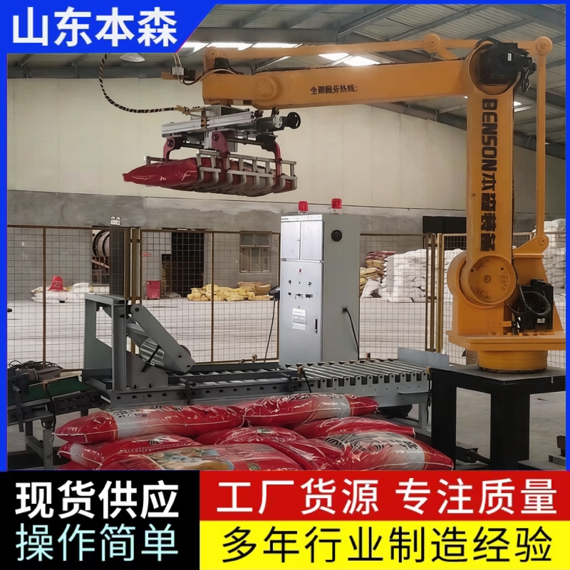 山东本森智能装备作为行业领先者,其拆垛机械手集成3D视觉定位与柔性抓取技术,支持纸箱、袋装、桶装等多类型物料,并提供免费方案设计、上门安装调试及终身维护服务,助力企业降本增效。