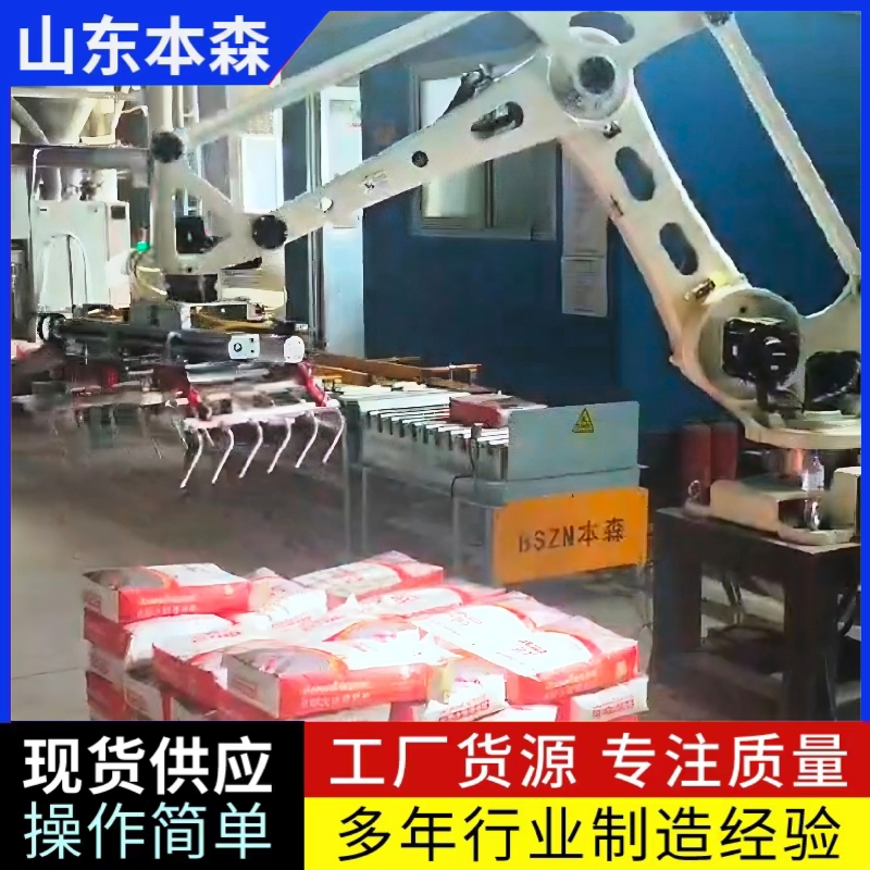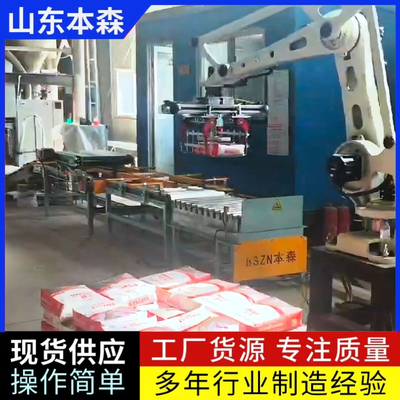 3.化工行业:适用于化肥、饲料等粉状物料的码垛,通过防爆设计满足特殊环境要求。本森智能装备(山东)有限公司的耐腐蚀型机械臂已应用于多家化工企业,稳定运行超3年。